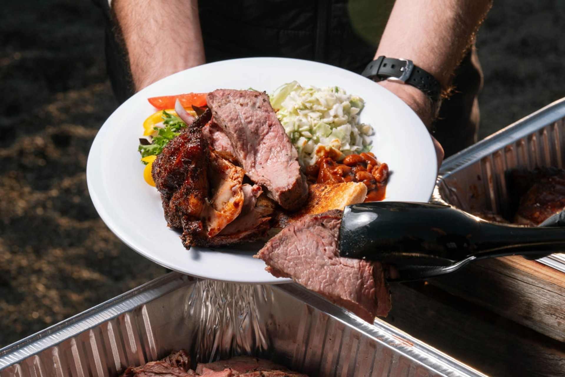 When you cater your meal with us, you can expect our award-winning BBQ fresh off our smokers, sliced and ready to serve to your guests. All catering comes with heavy disposable plates and cutlery, serving tongs and spoons for all items, and our delicious BBQ sauces.